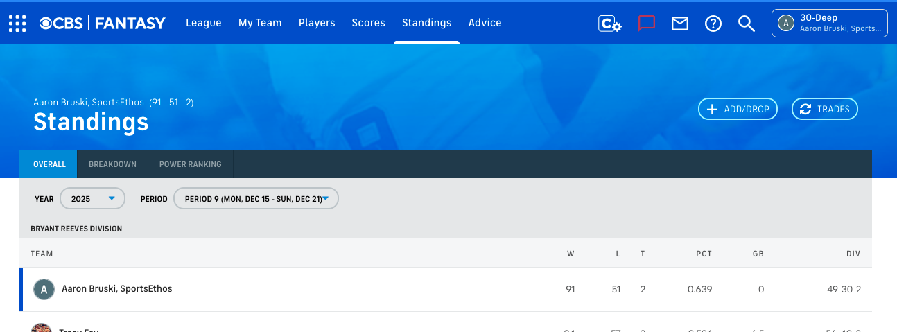 In the top industry league, 30-DEEP, an historic fantasy basketball league featuring the biggest names in the space and widely regarded as one of the most competitive and difficult leagues to win, I’m off to a league-best record. The roster was built around Anthony Edwards, Immanuel Quickley, Dyson Daniels, Kyshawn George, Reed Sheppard, Neemias Queta, and of course, Collin Gillespie, to name a few.