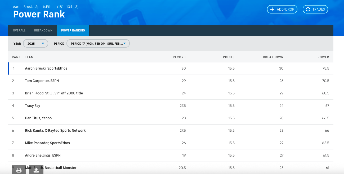 In the top industry league, 30-DEEP, an historic fantasy basketball league featuring the biggest names in the space and widely regarded as one of the most competitive and difficult leagues to win, Iโm off to a league-best record. The roster was built around Anthony Edwards, Immanuel Quickley, Dyson Daniels, Kyshawn George, Reed Sheppard, Neemias Queta, and of course, Collin Gillespie, to name a few.