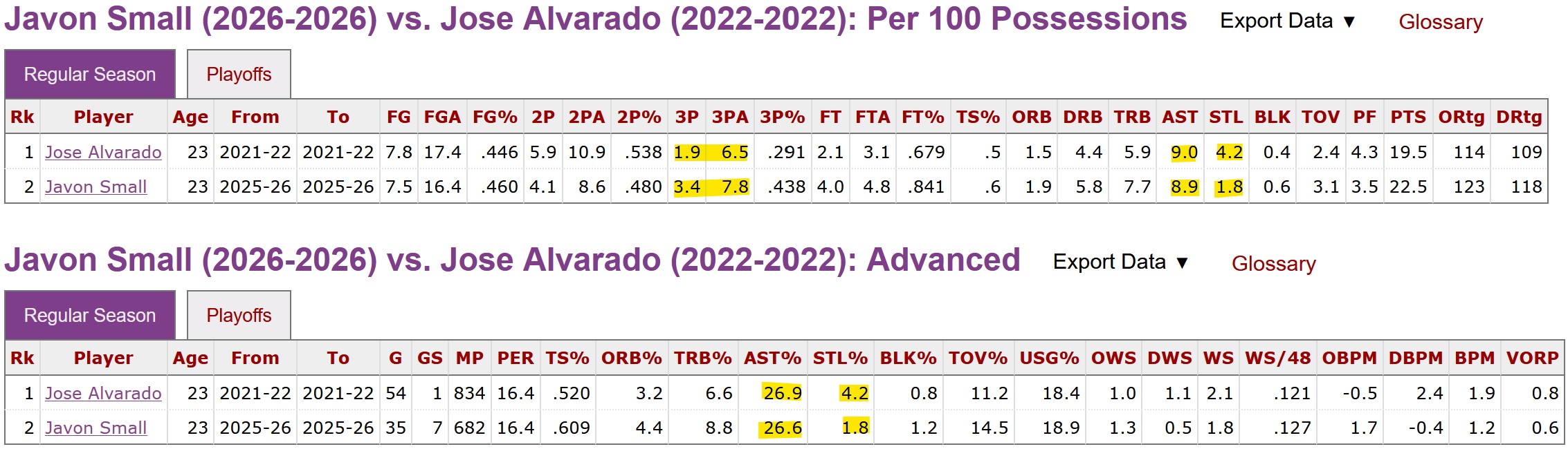 A player analog would be Jose Alvarado, who obviously has found success as a player in the NBA. How does Small stack up to him?