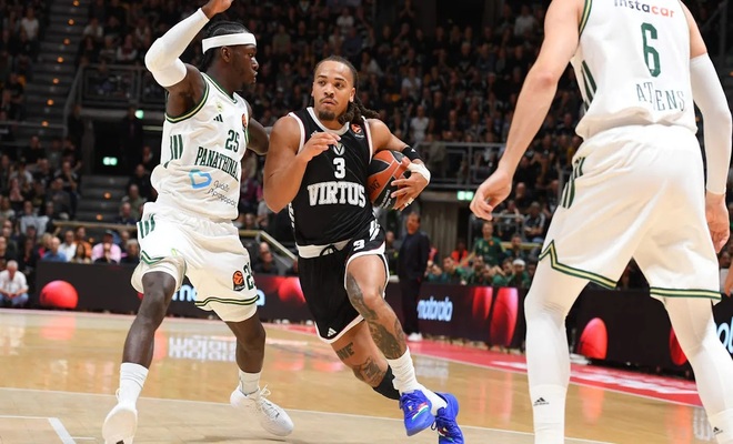 By halftime, Virtus had dictated the pace. They dominated the glass, forced seven turnovers, and slowed down everything Panathinaikos tried to do. Panathinaikos was never comfortable; their inside game was limited and their rhythm disrupted. Efficiency-wise, Virtus were on point, hitting their marks both inside and out, building a largest first-half lead of 15 before going to the locker room ahead by 13.